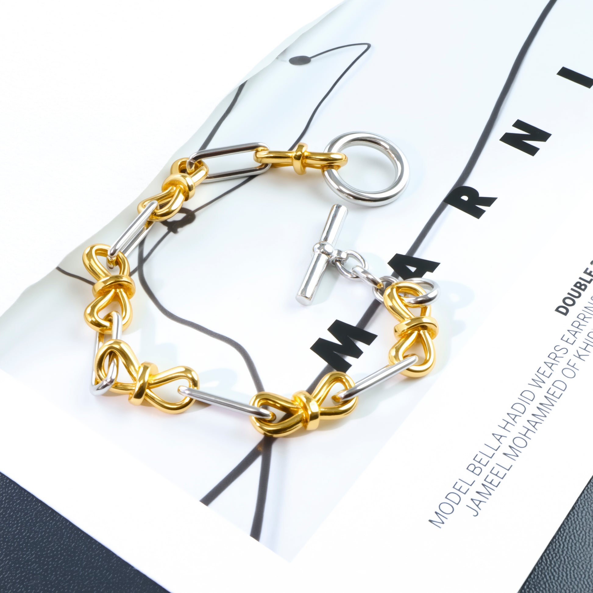 Unique Design: Centered around a bow tie motif, alternating gold and silver-colored chains break the monotony, blending vintage charm with modern flair. Effortlessly adapts to European and American fashion trends, ensuring maximum eye-catching appeal.💫