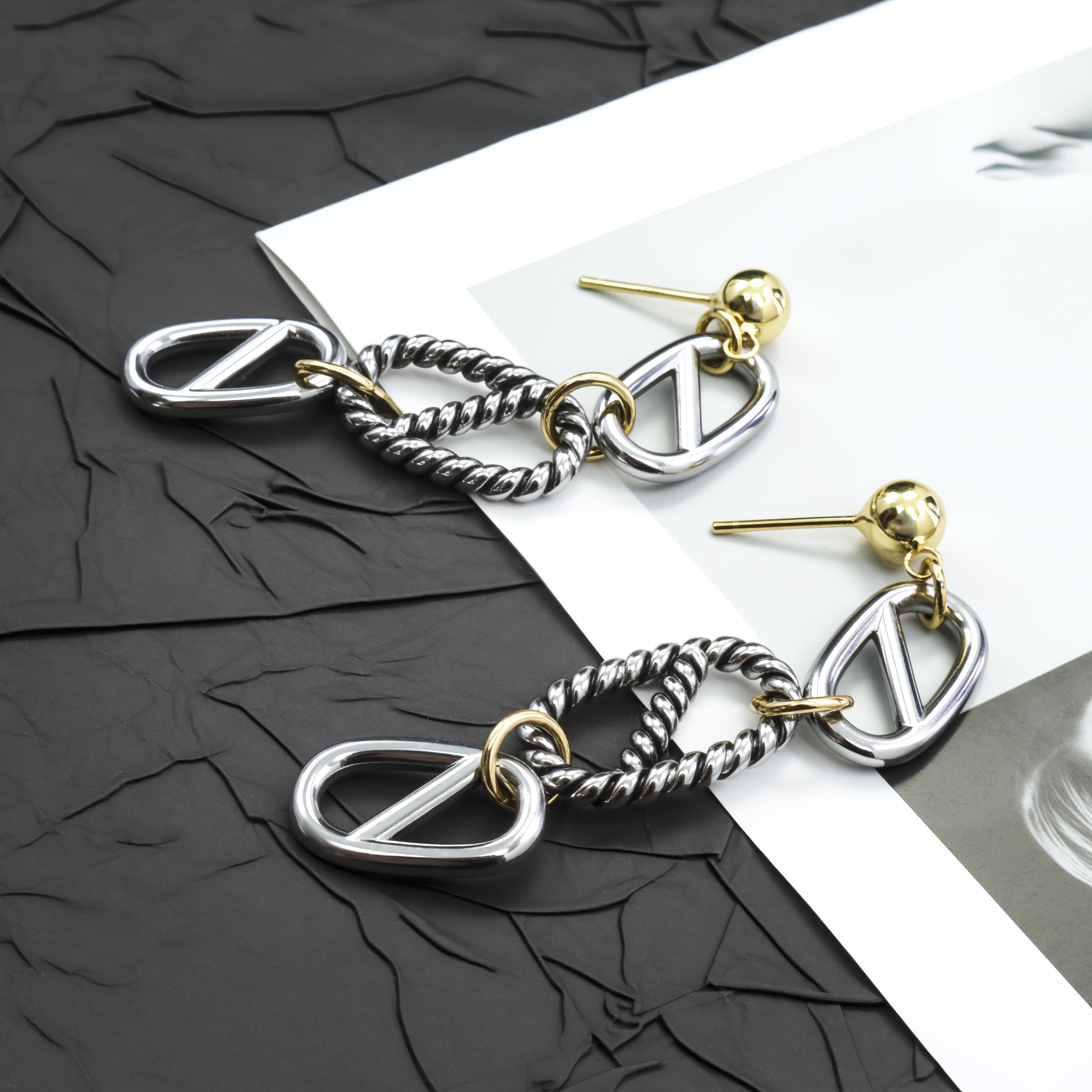 Edgy Elegance: Mix of silver - tone geometric links, twisted chains, and gold - tone accents. These earrings are a bold two - tone statement — perfect for Gen Z who love mixing metals and trends.